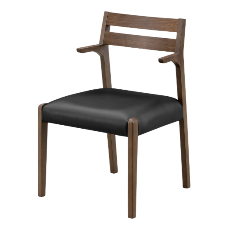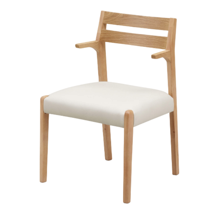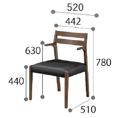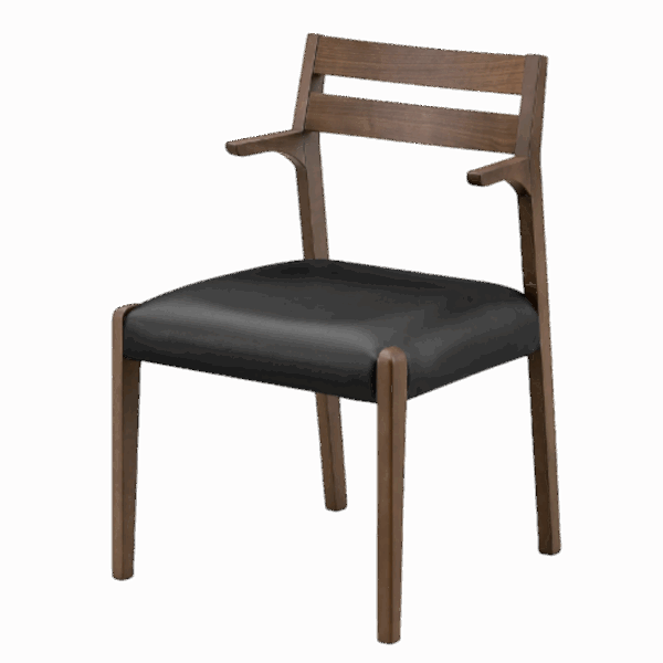 肘:ウォールナット材、背:ウォールナット突板、ラバーウッド材(ウォールナット色)、肘:オーク材、背:オーク突板、ラバーウッド材、座面はPVC