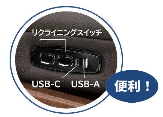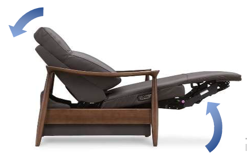 電動肉ライニング機能で背もたれとフットレストをボタンひとつでスムースに操作。