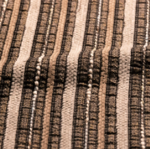 ねじった縄のような縦ラインのストライプ柄が印象的なデザインのファブリック。