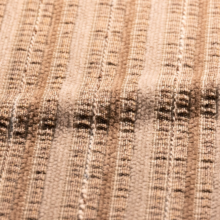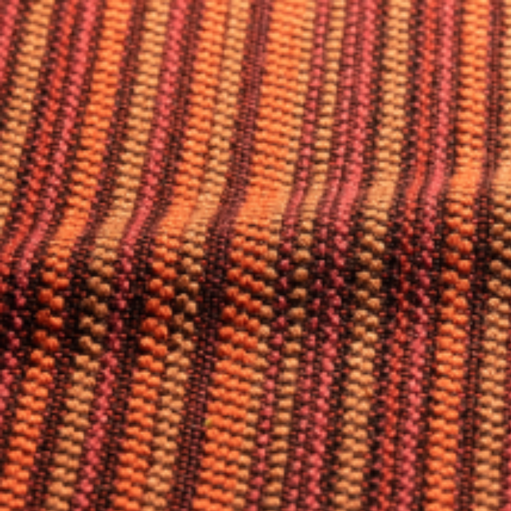 太い多色の糸をストライプで構成し、木製フレームを使ったソファとの相性がとてもよいざっくりとした仕上げとなっています。またポリエステル100%で強度も高く、速乾性にも優れています。